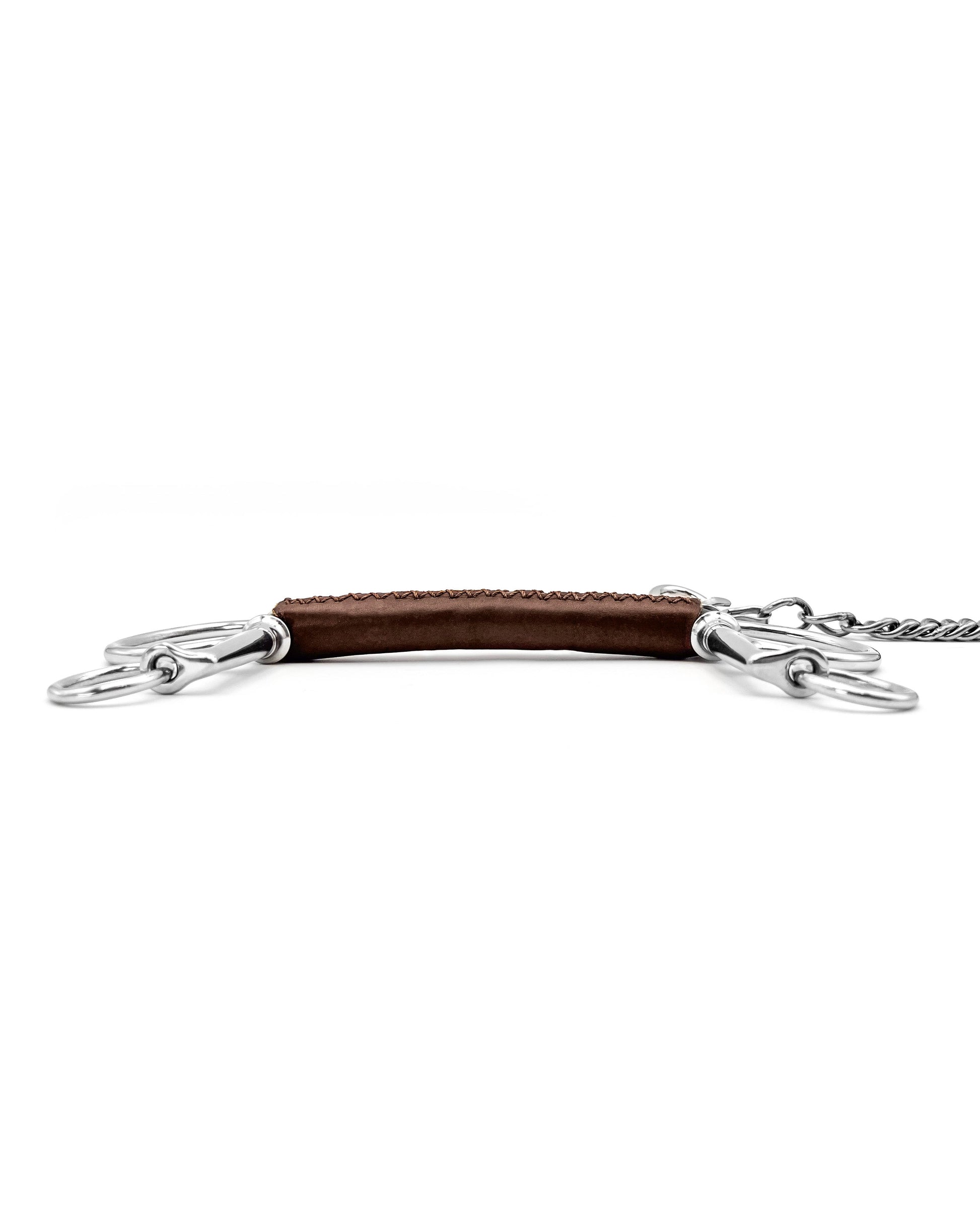 Fager's leather bits are handmade to offer the best quality possible. The leather is stitched by hand around a wire that's covered with nylon. This assures you that in case of an accident, the horse will not get hurt by the wire in the middle. The wire isn't only to keep you and your horse safe, it also keeps the shape of the bit.