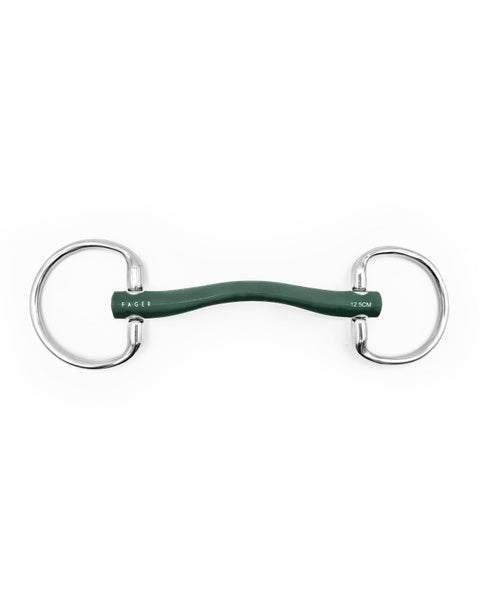 This mouthpiece is slightly thinner in the middle, allowing for a gentler fit on the tongue without excessive pressure on the bars or palate. The shape, combined with the gentle material, makes this bit a suitable option for horses with sensitive bars and palate who can be worried in the mouth, and throw their head up when you take the reins. This mouthpiece is suitable for a wide range of horses.